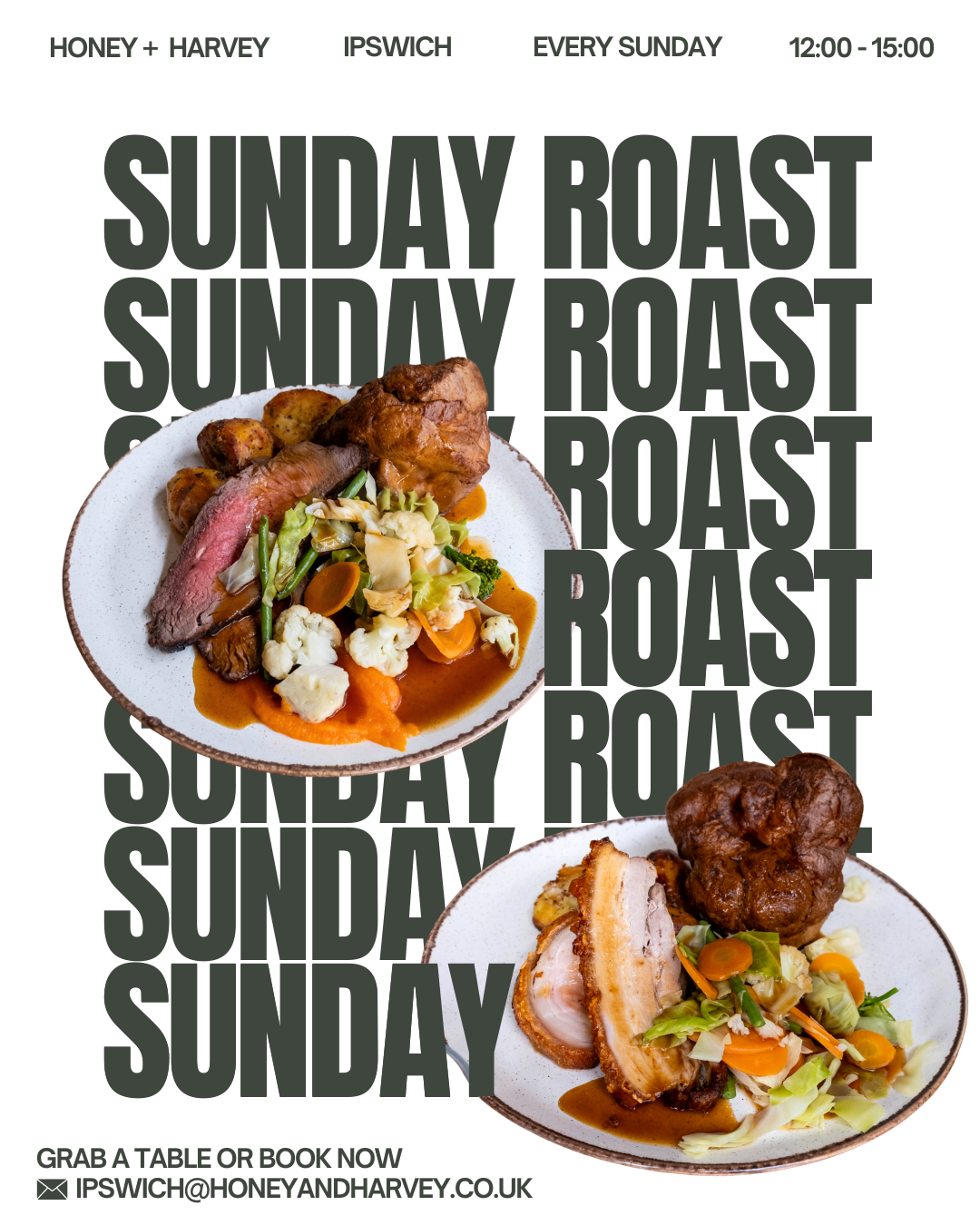 Every Sunday at Ipswich H+H, best to book to secure your spot. Email: ipswich@honeyandharvey.co.uk